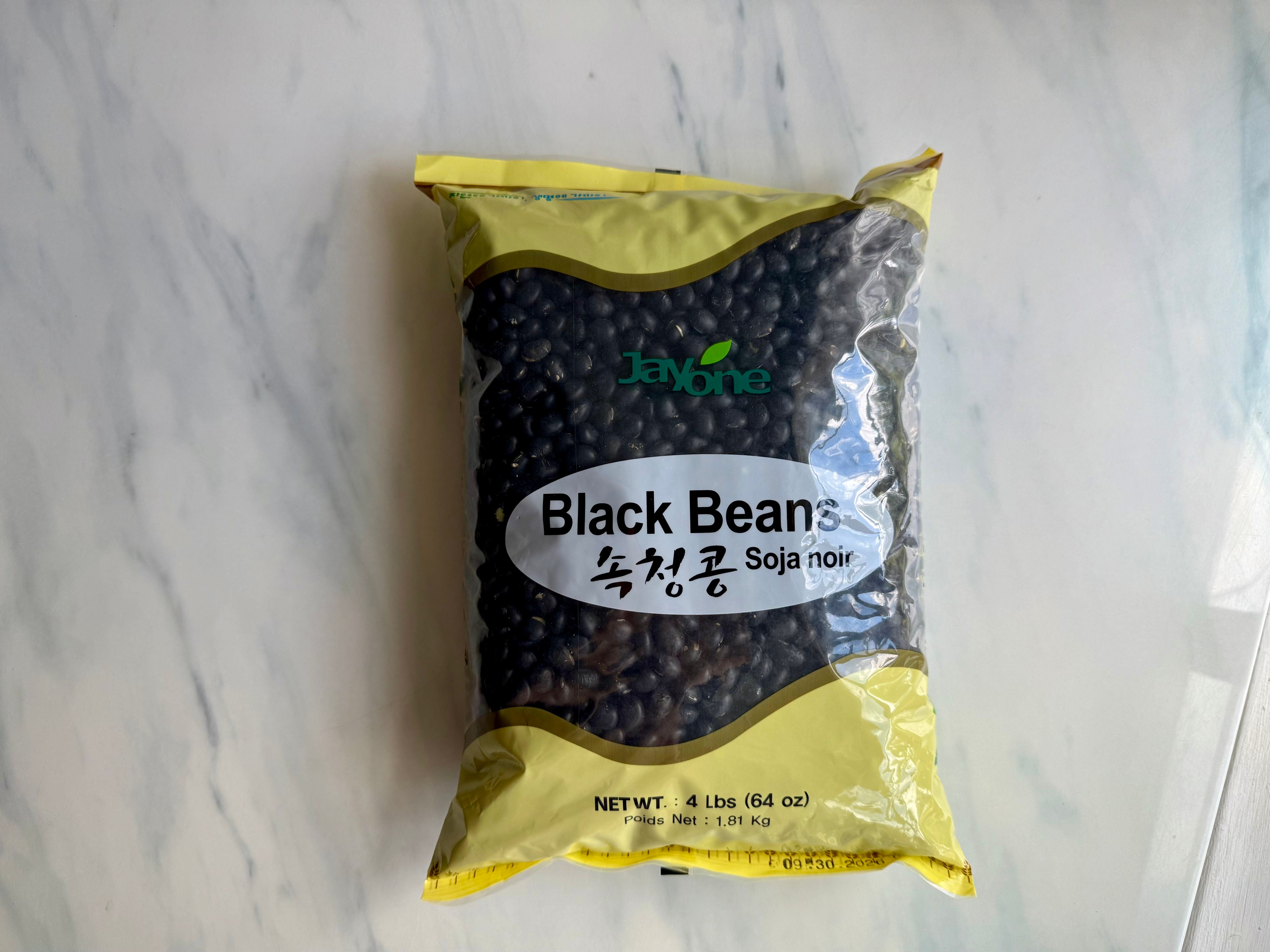 Korean black soybeans, often sold under the label ‘black beans’ at Korean markets, are different from the black beans we’re most familiar with. It’s black on the outside, but when split, the inside is green. What’s most notable is that it is higher in protein than common black beans.